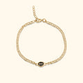 This bracelet is super cool! The bracelet is made of a delicate link with a mother of pearl stone in between. Wear this bracelet together with other bracelets and match it with your jewelry.